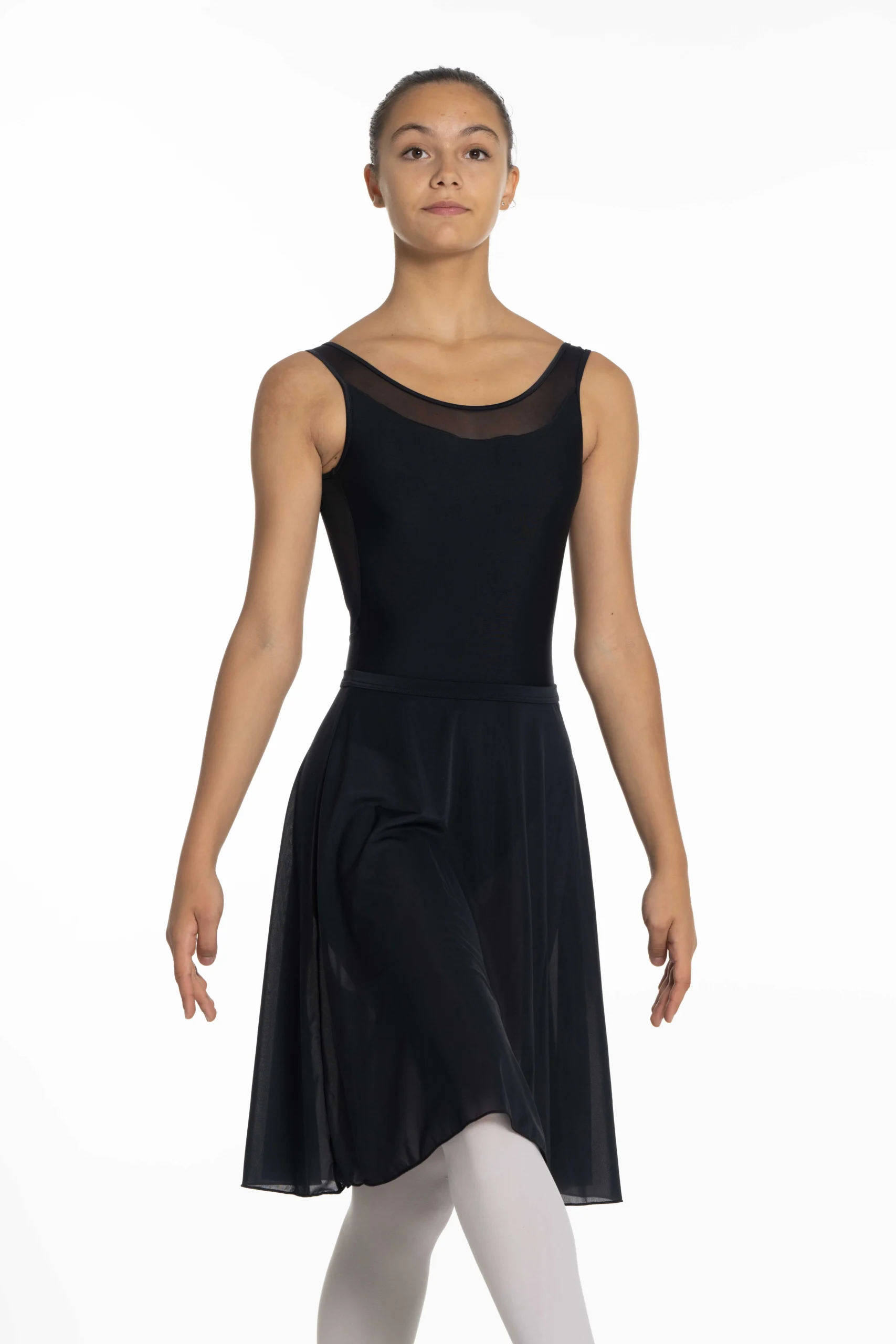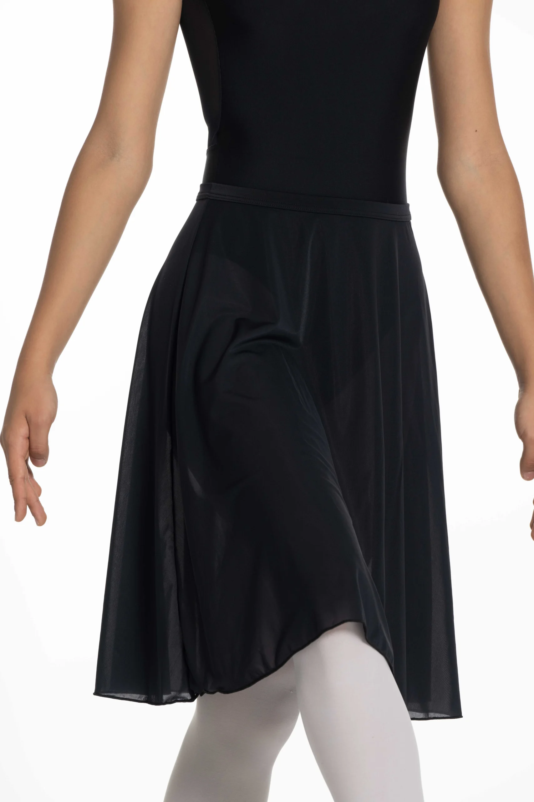 Jupe façonnée et longue en voile maille haut de gamme couvrant le genou.