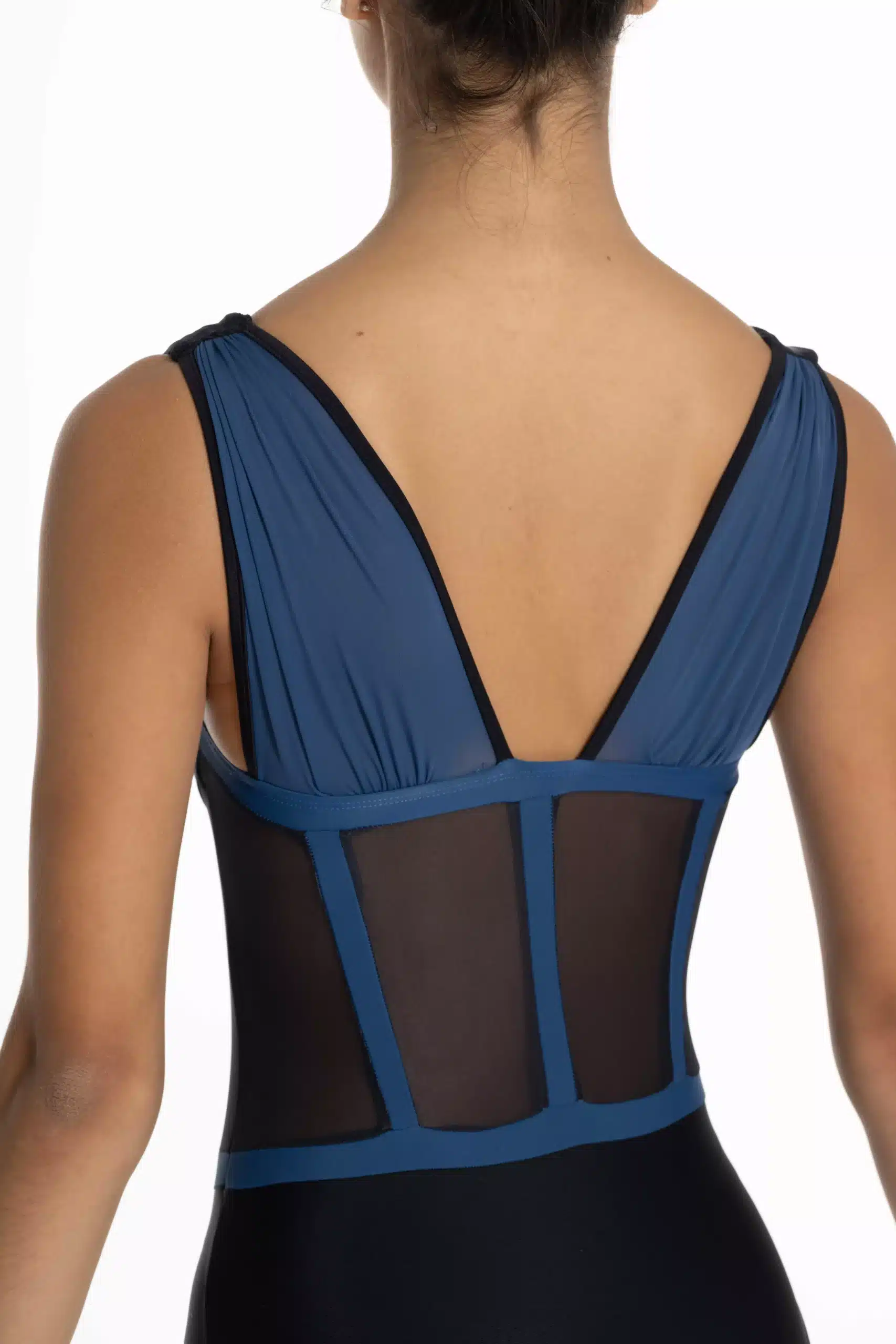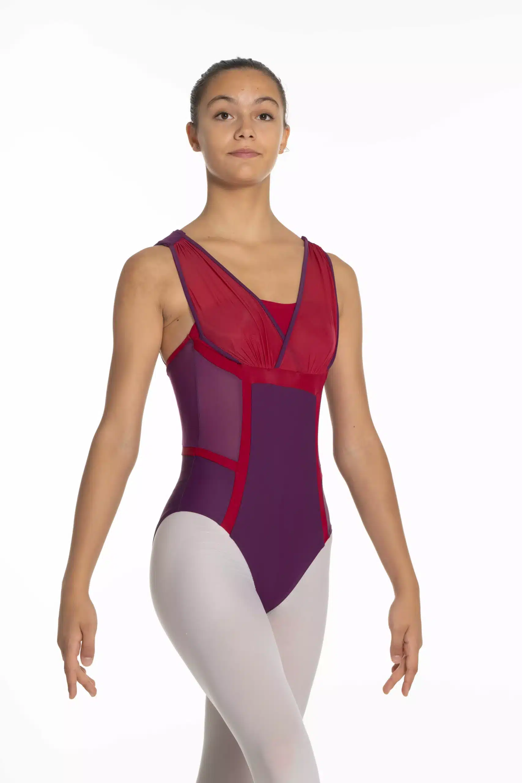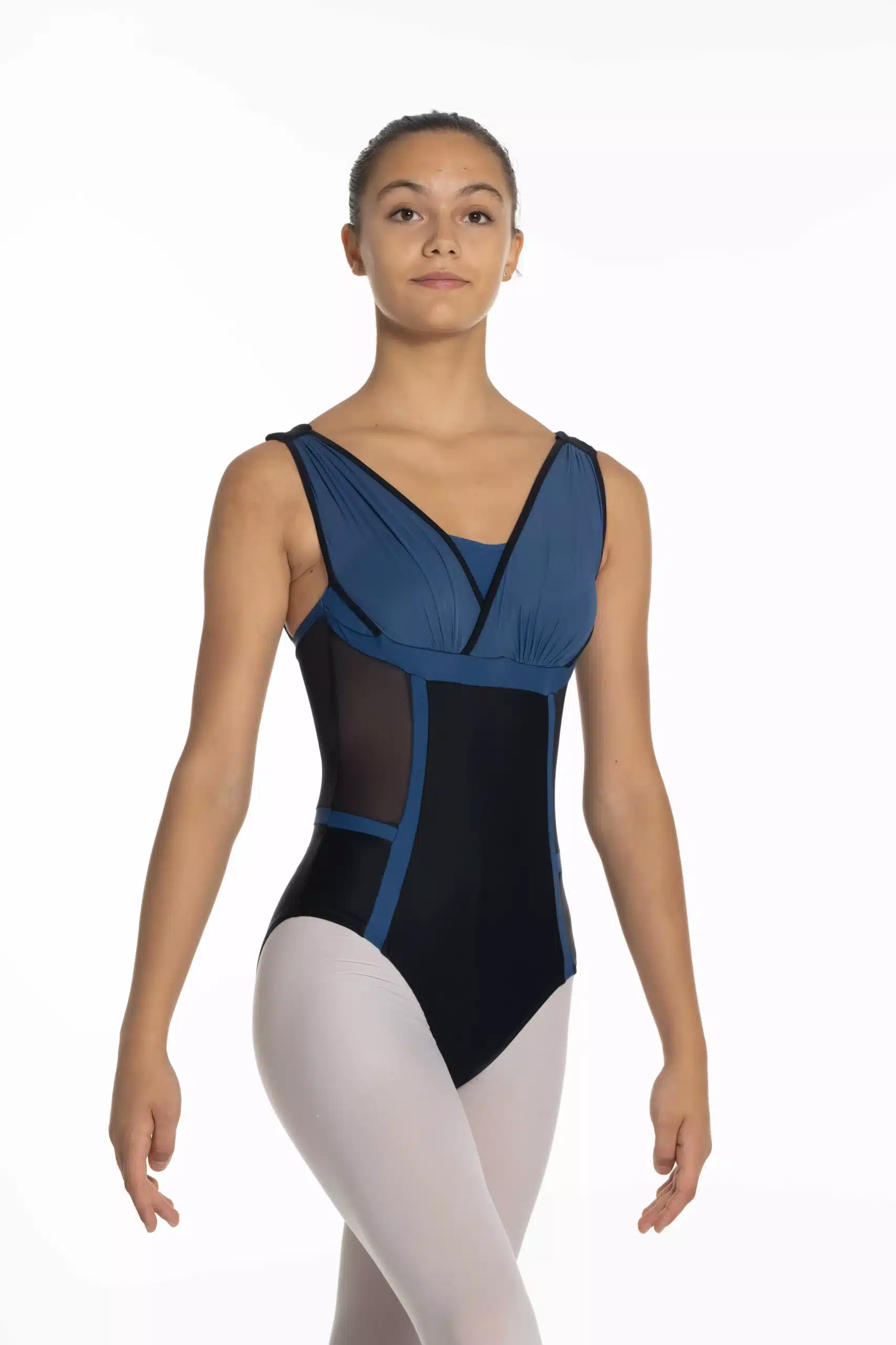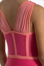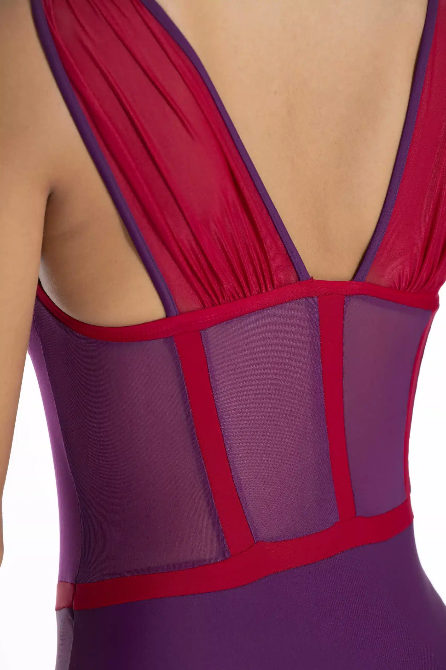 Justaucorps Nell bi-matières et bi-couleurs, très élégant et féminin par son jeu de couleurs et de matières