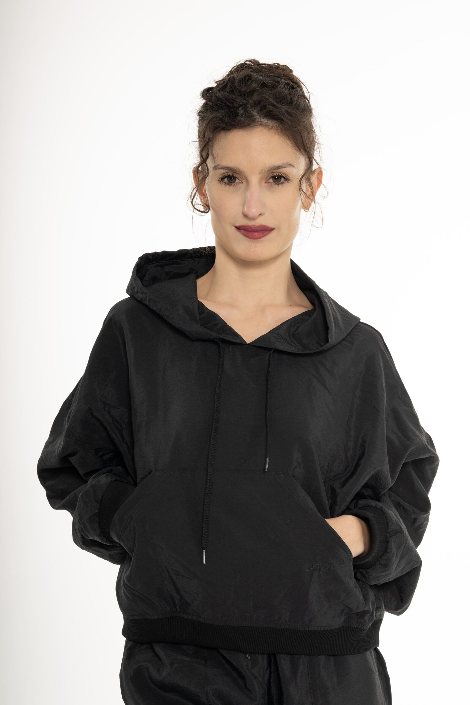 Hoodie with kangaroo pocket, loose shape.